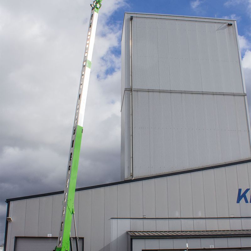 Ein echtes Highlight ist die hydraulisch teleskopierbare Klappspitze, die sich auch unter Last bequem per Fernsteuerung ein- und austeleskopieren lässt. Dadurch bleiben Sie selbst bei beengten Platzverhältnissen maximal flexibel – perfekt für Bühnenbetrieb und komplexe Montagearbeiten.