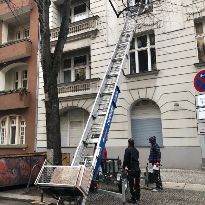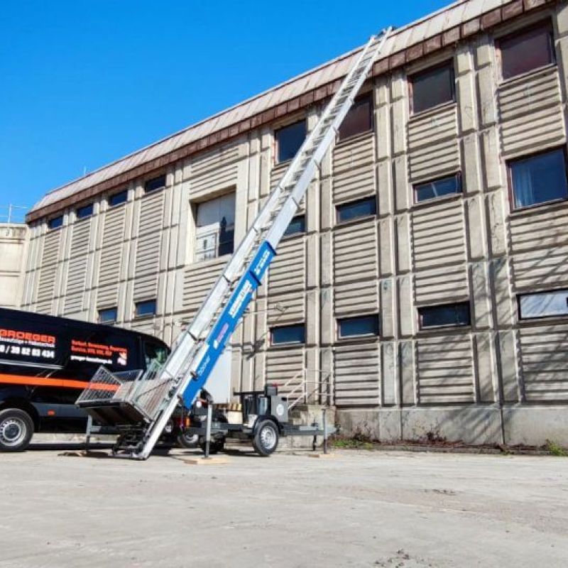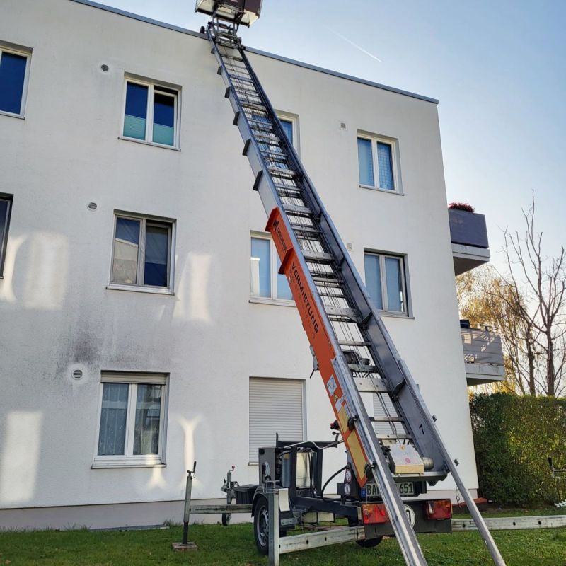 Bei Windgeschwindigkeiten ab 45 m/s (Windstärke 6) ist der Auf- und Abbau verboten. Der Aufzug ist ab 18 Metern mit einem Seil (geführt vom Dach) bei Auf- und Abbau zu führen.