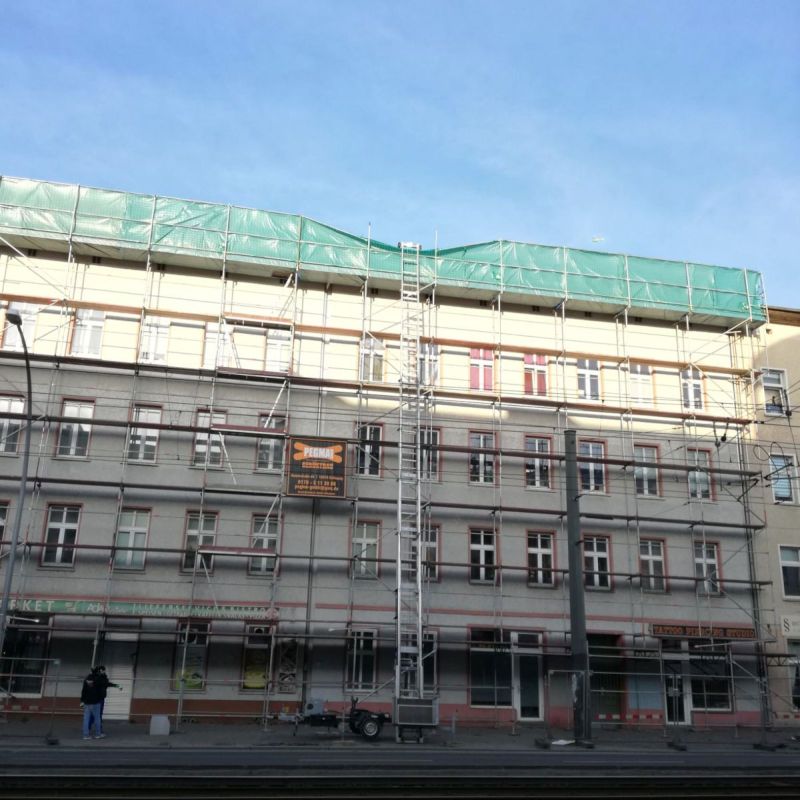 Die Sicherung des Aufzuges am Gebäude bzw. am Gerüst und alle behördlichen Genehmigungen für die Stellung des Gerätes am Standort obliegt dem Mieter. Gestellungsfreigabe durch den Mieter wurde erteilt.