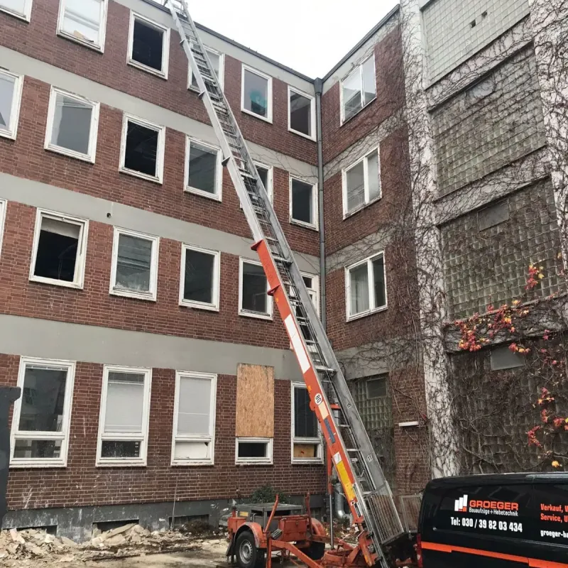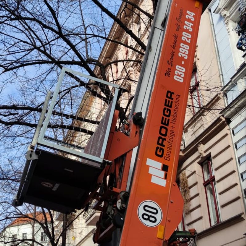 Die Sicherung des Aufzuges am Gebäude bzw. am Gerüst und alle behördlichen Genehmigungen für die Stellung des Gerätes am Standort obliegt dem Mieter. Gestellungsfreigabe durch den Mieter wurde erteilt.