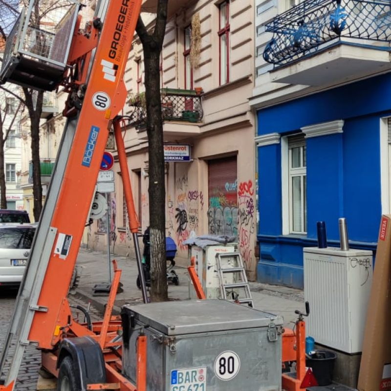 Die Sicherung des Aufzuges am Gebäude bzw. am Gerüst und alle behördlichen Genehmigungen für die Stellung des Gerätes am Standort obliegt dem Mieter. Gestellungsfreigabe durch den Mieter wurde erteilt.