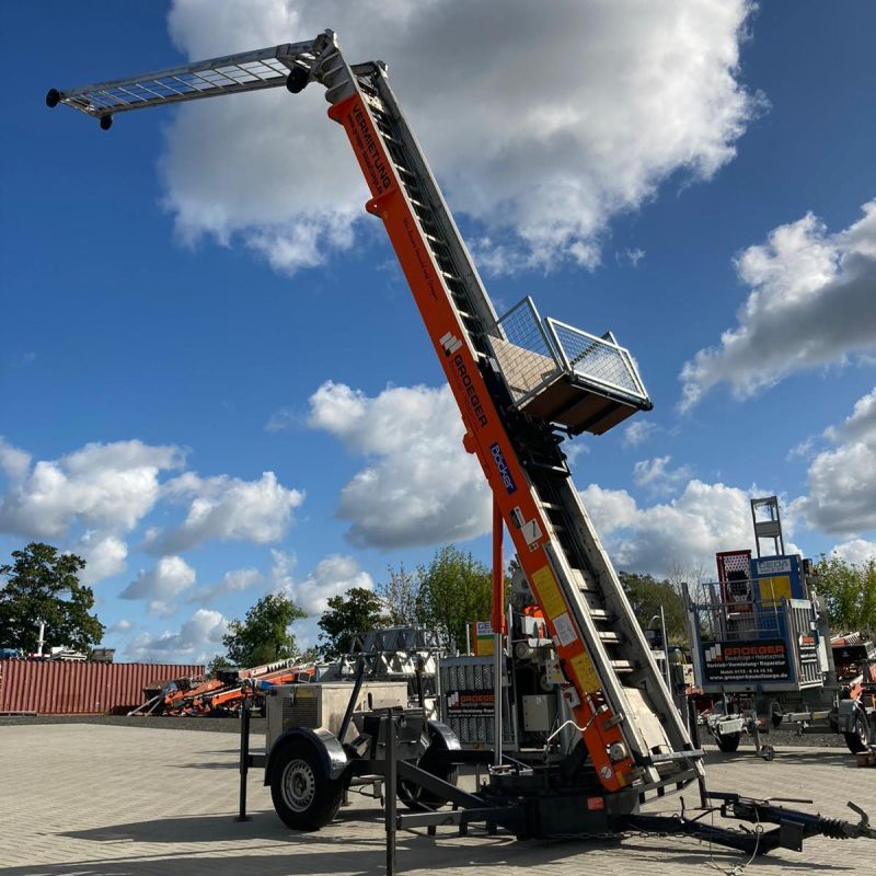 Die Böcker HD-Serie zeichnet sich durch ein stabiles Alu-Leitersystem aus. Aufbauhöhen von 7-40m fördern Lasten in die Höhe. Der Universalkorb kippt bei Bedarf von 45 Grad- 110 Grad aus, damit das Material perfekt am Entladeort entnommen werden kann!