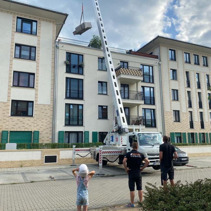 Die Sicherung des Aufzuges am Gebäude bzw. am Gerüst und alle behördlichen Genehmigungen für die Stellung des Gerätes am Standort obliegen dir als Mieter. Die Gestellungsfreigabe wird von dir erteilt.