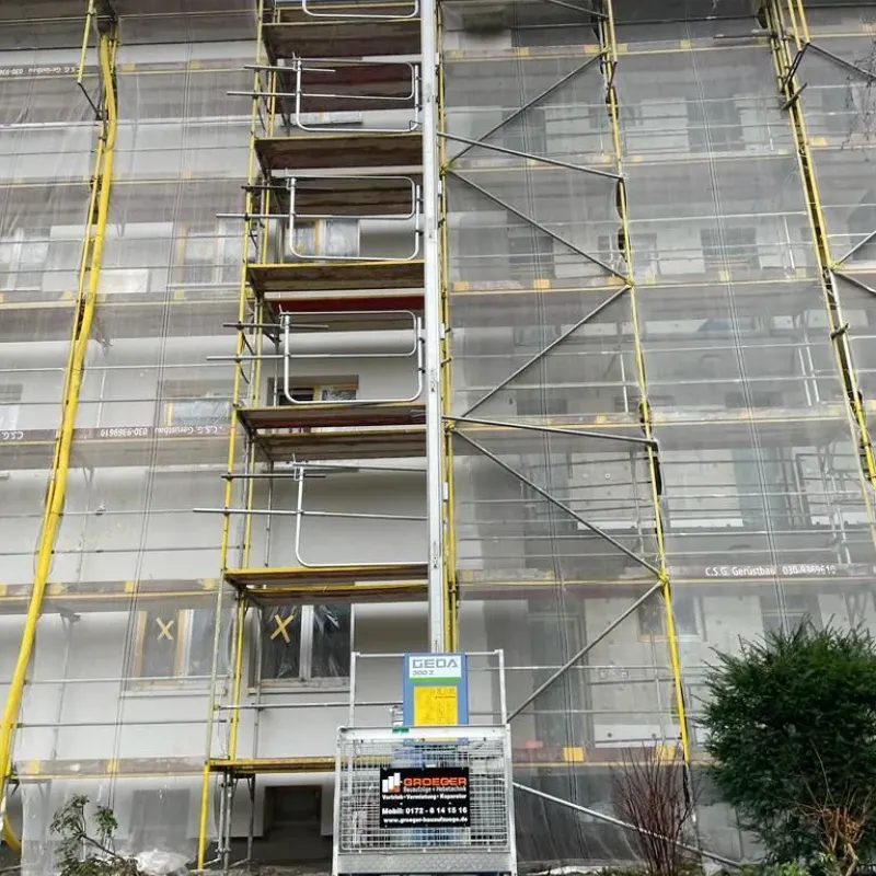 Wir bitten – kurz vor der Fertigstellung des Gerüstes – um eine Baustellenbesichtigung, an der auch zwingend der Gerüstbauer oder eine Vertretung anwesend sein muss. Bei der Baustellenbesichtigung wird der Aufstellungsort für das Mietgerät in Absprache mit der Gerüstbaufirma bestimmt. Die Montage des Mietgerätes an der Rüstung setzt die Freigabe des Gerüstbauers voraus. Der Mieter hat vor Gestellung des Bauaufzuges die Freigabe vom Rüster zu erhalten bzw. holt diese vor Inbetriebnahme ein!